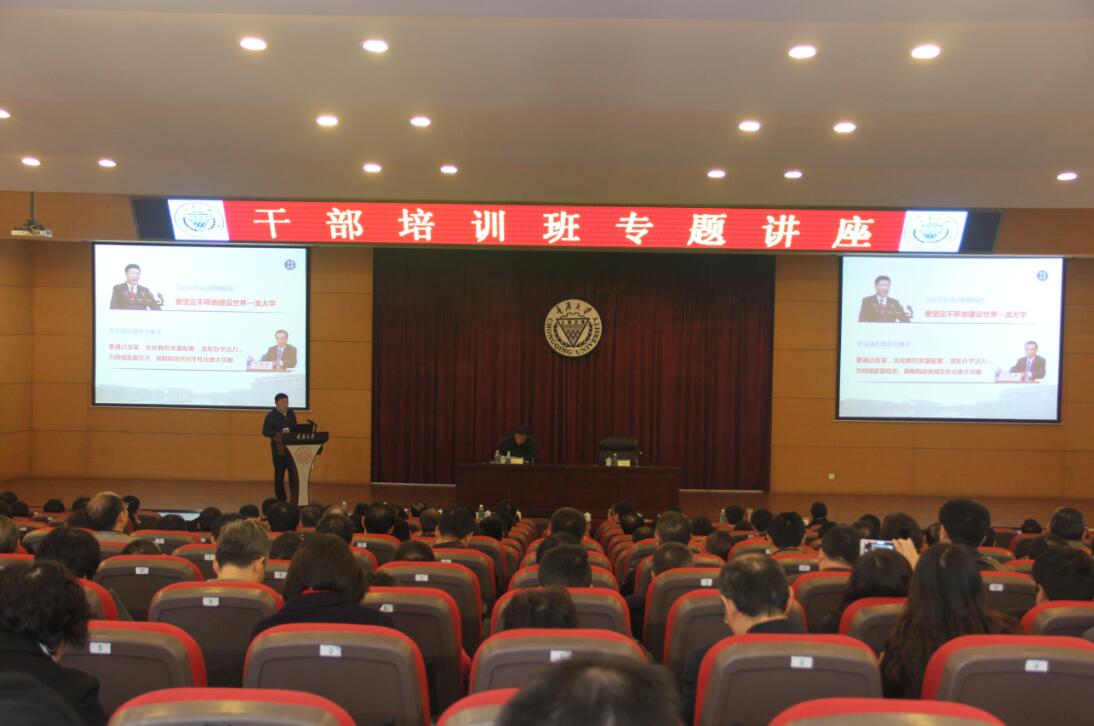 11月10日下午3点,学校党委党校在民主湖报告厅组织干部培训班专题讲座,学校领导、中层干部、部分学术学科带头人近400人参加学习。此次专题讲座由周旬书记主持。